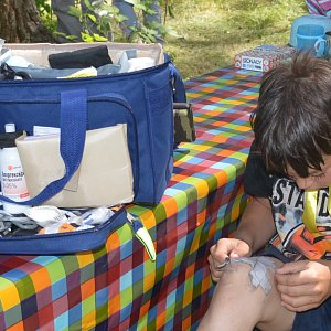 Как и ожидалось, самыми востребованным на слете были перевязочные средства. Но уже на второй день стало ясно, что бактерицидных пластырей взяли мало! Комариные расчесы, мелкие ссадины от кустов, мозоли – повреждения не серьезные, но все равно требующие обработки и наклейки пластыря. Так же нужно учесть – после купания в реке и мытья рук пластыри необходимо обновлять. В итоге, привезенный запас бактерицидного пластыря в полосках улетел за два дня! С каждым днем пластырь тратился все больше – комары кусались, мозоли продолжали натираться. Пришлось докупить еще пять раз по столько, всего за турслет потрачено более 150 полосок бактерицидного пластыря.